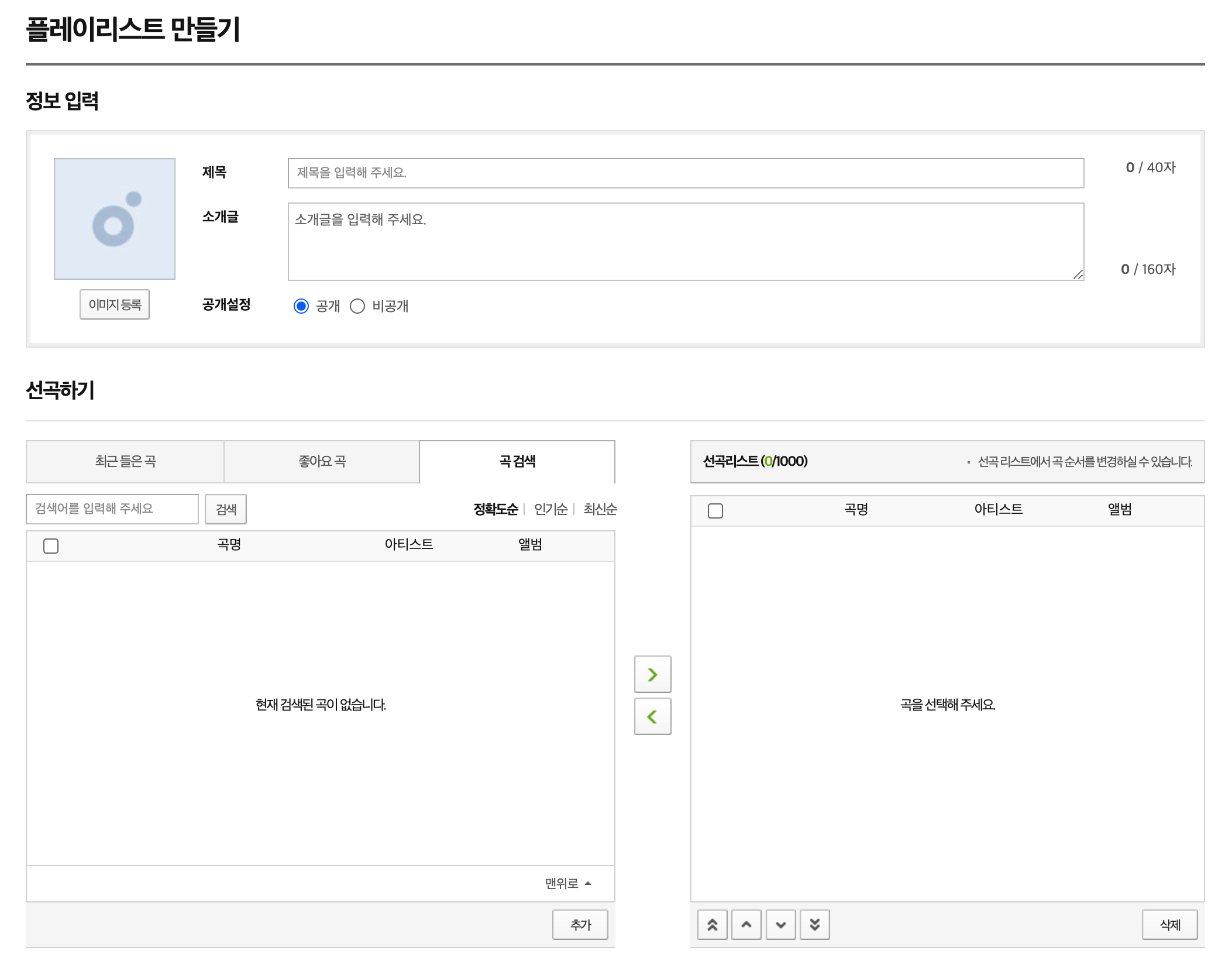 1.피씨 화면의 멜론 플레이리스트 만들기 화면으로 이동