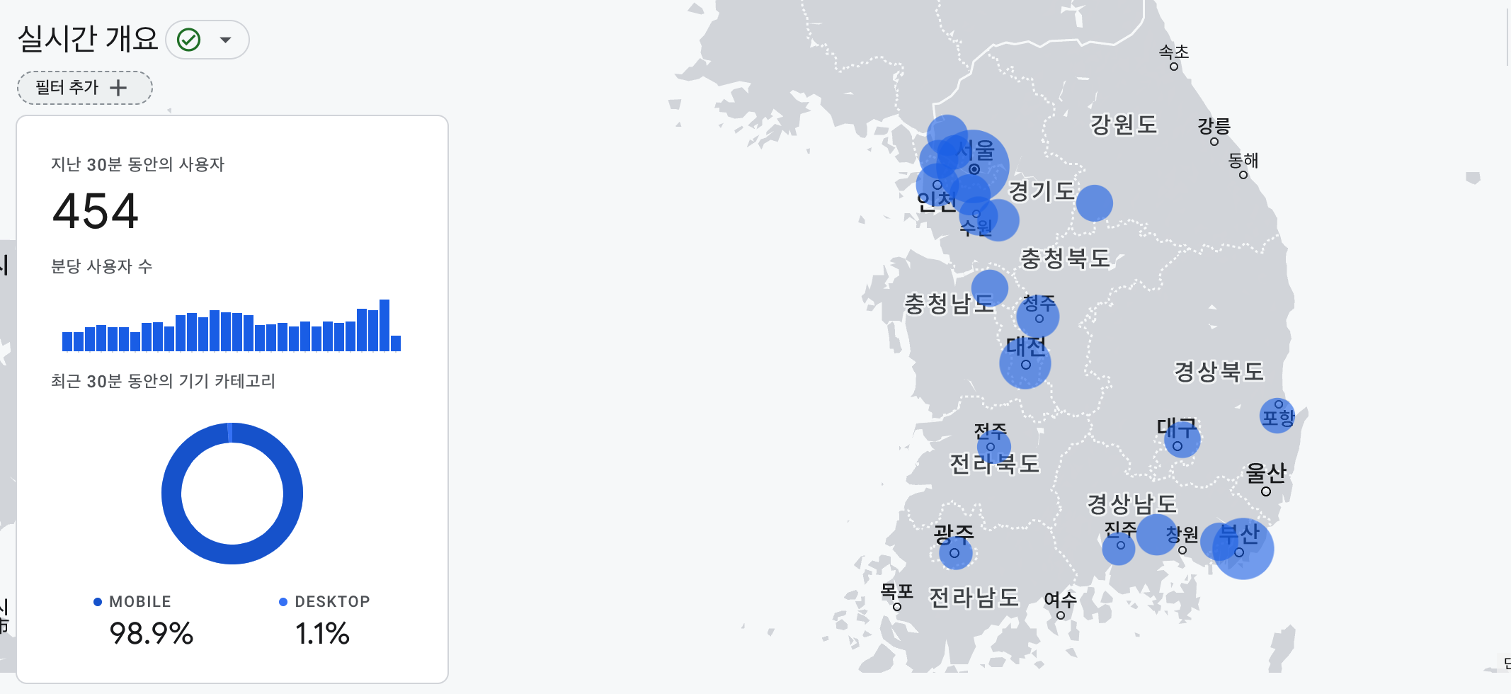 구글 어널리틱스로 실시간으로 참여자를 보는데 전국적으로 많이 참여한걸 보자니..