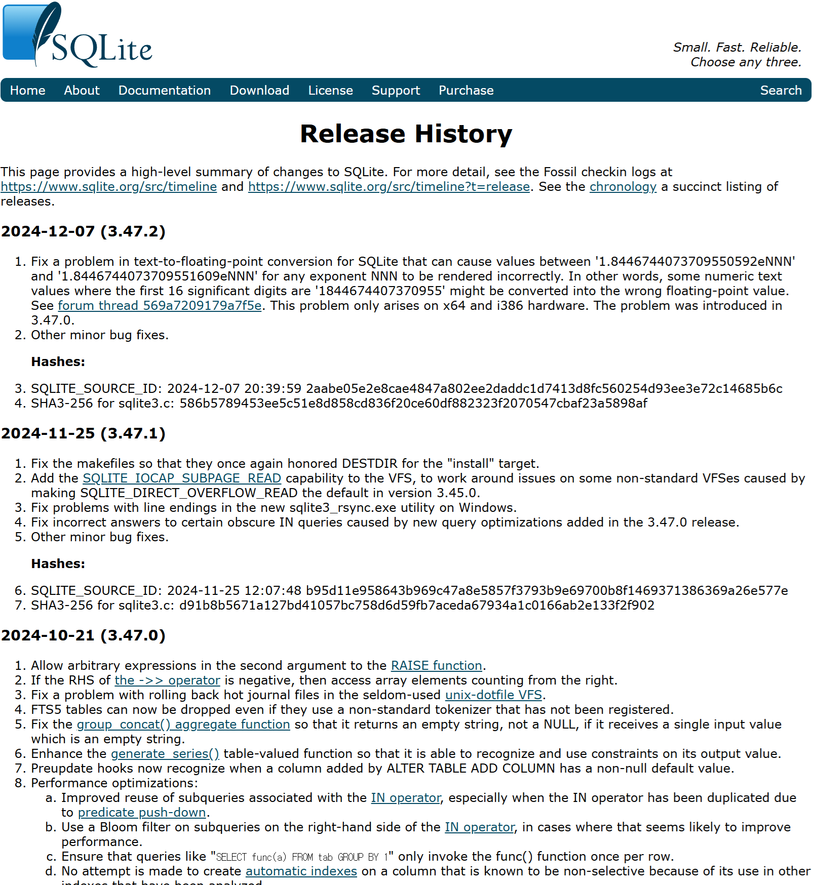 2000년에 D. Richard Hipp(DRH)씨가 해군 구축함에서 서버가 다운될 때마다 작동을 멈추는걸 보고 열받아서 혼자 개발하심